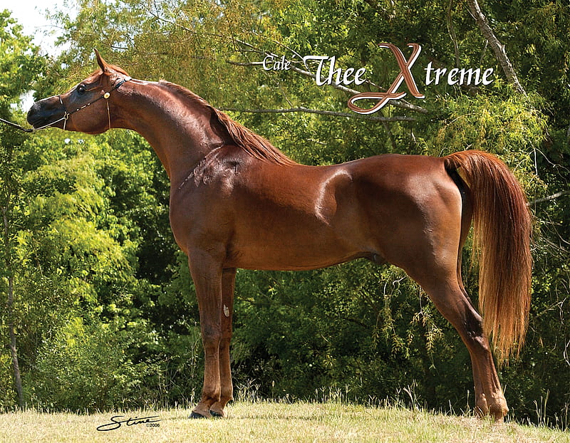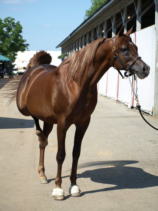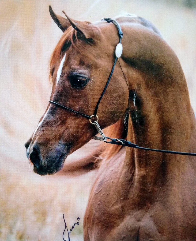 Within New Egyptian breeding, you will find people who “poopoo” pedigrees that have Thee Desperado or The Minstril in them because they are vastly popular within the New Egyptian group. But what do you do when you have such rare and endangered breeding that may have some lines you would rather not have? I make the best of it! While I do agree that there is perhaps too much TD or TM blood in the group as a whole, I don’t find it a reason to throw out some really rare lines. And in fact, Cale Marquess’s sire, Cale Thee Xtreme made a name for himself in his own right, rather surprisingly apparently, at the Egyptian Event in 2003. According to the Facebook Group titled Friends of Cale Thee Xtreme, “This exotic Straight Egyptian stallion, CALE’ THEE XTREME, swept the 2003 Egyptian Event by winning more classes than any other horse. Virtually unknown, and un-promoted, it was a stunning victory: Reserve Supreme Champion Stallion, Reserve Senior Champion Stallion, Champion Stallion Amateur Handler, Most Classic Head Males, First place World Class Stallions, First Place Amateur Handler Stallions. In addition, it was the first time a brother/sister combination has won Most Classic Heads, and/or in the same year, and/or bred by the same owner. Numerous Class A Championships, Reserves and Firsts.”