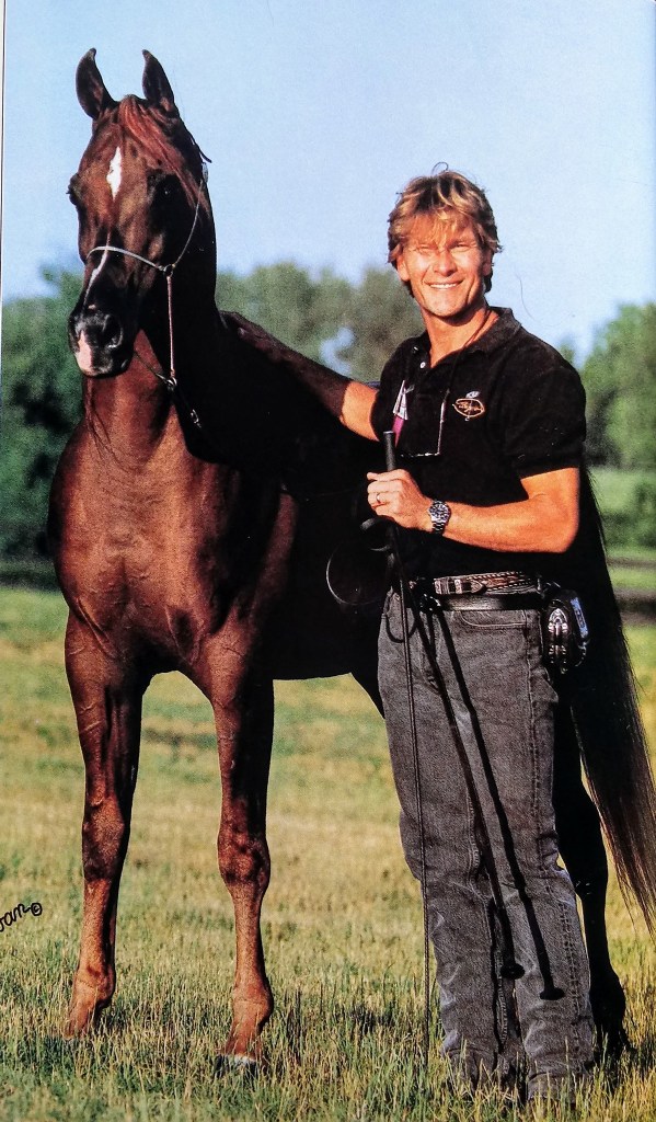 Another sire that I LOVE in her pedigree is Tammen, the beloved stallion of Patrick Swayze. Tammen descends from imports brought to the US by the Kline family. He was bred by Tom McNair, manager and trainer of Gleannloch Farms, which imported and produced some of my personal favorite Straight Egyptians, and who’s influence is heavy in my herd. Be sure to check out the Fans of Gleannloch Arabians and Fans of Kline Arabians groups on Facebook. It is fascinating to learn more about these horses’ influence within Arabian pedigrees.