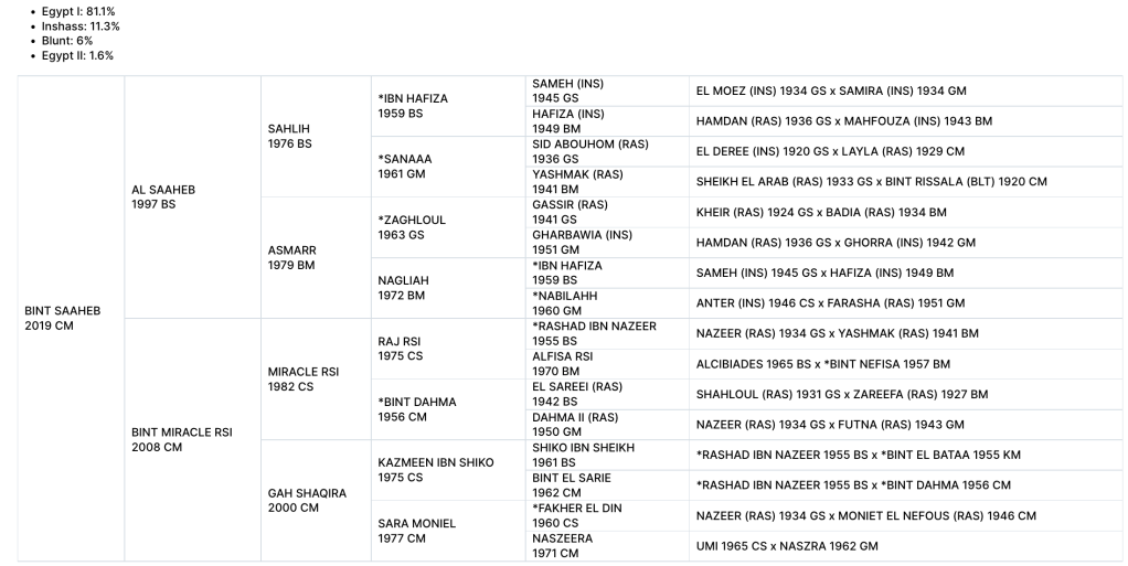Bint Saaheb aka Fancy came to DHA from a local rescue. She is a half sister to Bint Matala, and brings in some Pritzlaff Egyptian breeding through her dam side.